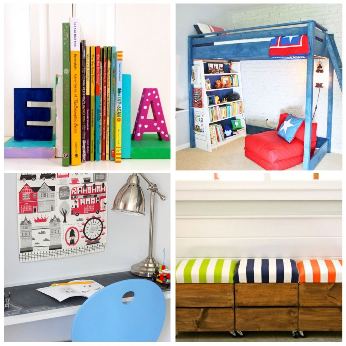 This youngsters’ bookend equipment is a good suggestion for organizing a examine space with vibrant colours whereas exhibiting off their favourite books in type.