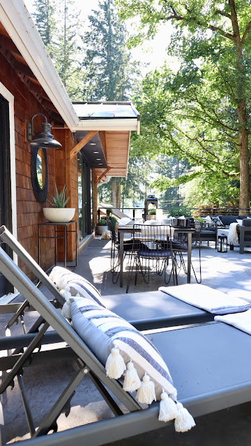 I added these nice pillows to our sectionals and lounge chairs to tie the 2 areas collectively.