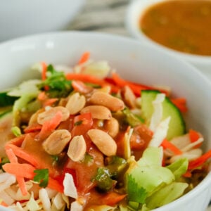 - I wish to let folks add their very own dressing and peanuts, however you may toss every little thing collectively proper earlier than serving should you favor.