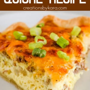 Savory sausage, onions, cheese, and savory egg custard nestled in a flaky crust. This straightforward quiche recipe will probably be an prompt household favourite!