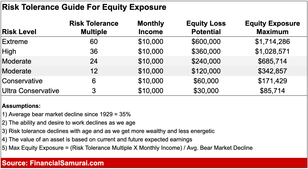 This is a desk that highlights the Threat Tolerance A number of, expressed by way of working months. Your private danger tolerance will fluctuate, so contemplate developing the rest of your portfolio with bonds, actual property, or different much less unstable belongings.