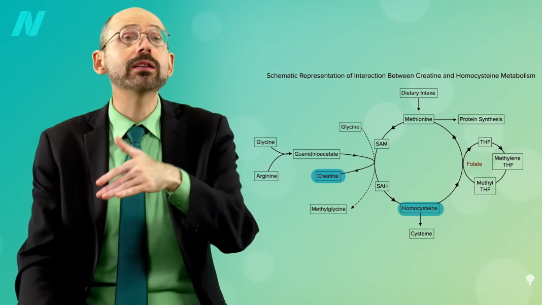 The common blood ranges of homocysteine in males are about 1.5 factors greater than in ladies, which can be one of many causes males are usually at greater danger for heart problems. Girls don’t want to make as a lot creatine as males since they have an inclination to have much less muscle mass. That will assist clarify “the ‘gender hole’ in homocysteine ranges.” For those who bear in mind from my earlier video and as seen beneath and at 0:36 in The Efficacy and Security of Creatine for Excessive Homocysteine, within the strategy of making creatine, our physique produces homocysteine as a by-product. So, for folks with stubbornly excessive homocysteine ranges that don’t reply sufficiently to B nutritional vitamins, “creatine supplementation could characterize a sensible technique for reducing plasma homocysteine ranges”—that’s, decreasing the extent of homocysteine into the traditional vary.