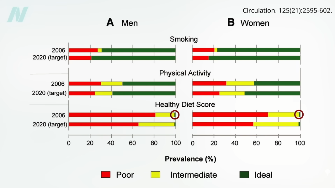 A couple of decade in the past, the American Coronary heart Affiliation (AHA) expressed concern that its â2020 goal of bettering cardiovascular well being by 20% by 2020 is not going to be reached if present traits proceed.â By 2006, most individuals had been already not smoking and had almost achieved their objective for train. However when it got here to nutritious diet rating, solely about 1 % bought a 4 or 5 out of its food plan high quality rating of 0 to five, as you may see under and at 0:35 in my video, Friday Favorites: The Scientific Consensus on a Wholesome Weight loss plan. And thatâs with such âideally suitedâ standards as ingesting lower than 4 and a half cups of soda every week.